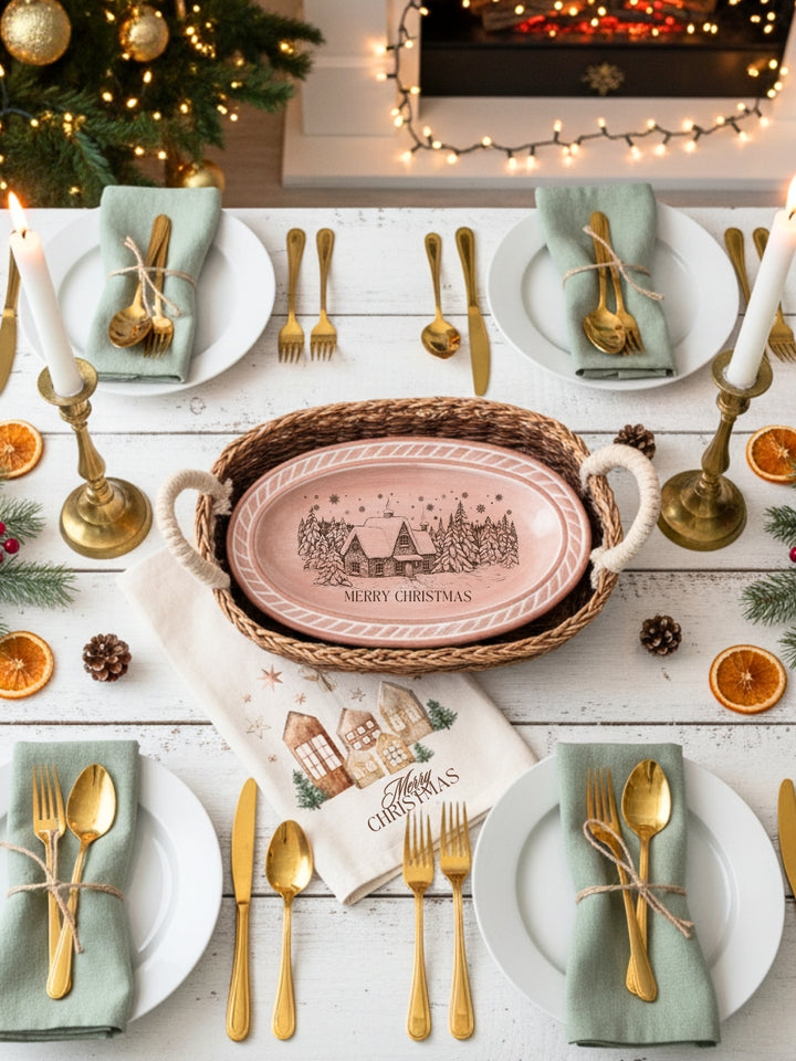 Bread Warmer Gift Box With Pot Holder and Tea Towel - Christmas Oval